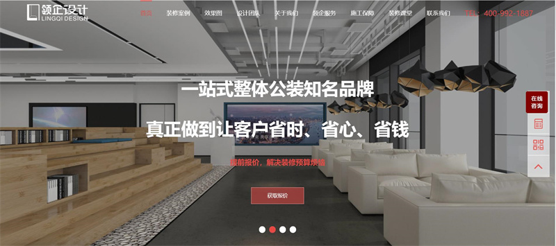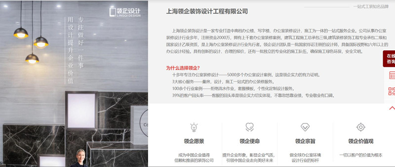 3、正規的裝修公司基本都有自己的官方網站,根據網站也可以判斷這家公司有沒設計能力,裝修案例。領企