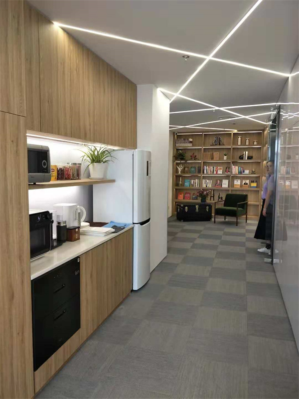 4、辦公室裝修地面材料首先可以根據原始交付條件選擇地面材料,上海辦公室裝修常規交付標準為架空地板交付,這種情況下建議選擇地毯、pvc地板等材料,如果地面原始為毛坯或原始留有一定高度差,這種情況地磚。木地板等也是不錯的選擇。另外不同的區域地面材料也有不同的選擇,比如茶水區建議選擇相對防水些的材料,容易清理些。