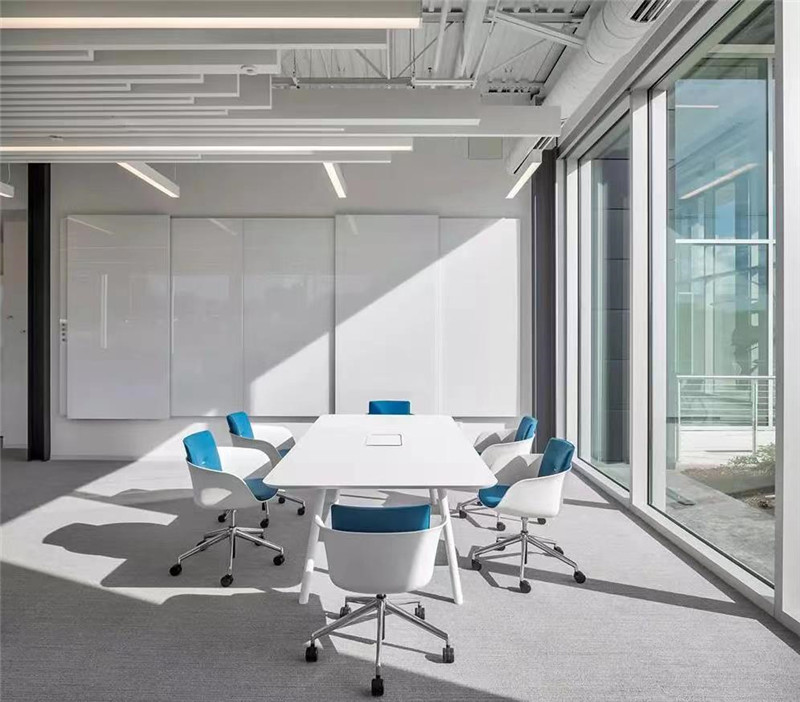 2、 其次明白了洽談室與會議室的不同之處后,那么又該如何打造洽談空間呢?先是洽談室相對于會議室更方便作為面試間使用,小一點的洽談室相對于會議室作為面試間在氣氛與場合上更具有優勢。不僅如此洽談室相比于會議室,平時也可以作為企業內部幾人非正式場合私下交流討論的功能來使用。此外洽談室相對于體量較大的會議室,其外形還可以結合空間的整體形狀來構造,例如互聯網公司洽談室完全可以結合企業屬性和空間效果做成圓形或者圓角矩形等形式,這樣也能使空間更加活躍。