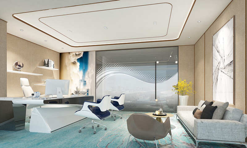 而常用的冷色系藍色、綠色和青色;藍色則代表平靜、永恒、理智、深遠等,使用藍色會使人感到平靜且嚴肅,因此藍色在辦公室裝修過程中大多用于會議室、洽談室這些嚴肅的會議區域;