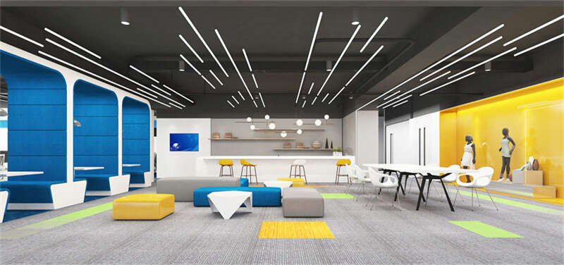 黃色代表溫和、明朗、高貴、快活等,對人來說使用黃色更能使人激發靈感,因此黃色在辦公室裝修過程中常常被用于開敞的員工休閑活動區或多人使用的功能型房間;
