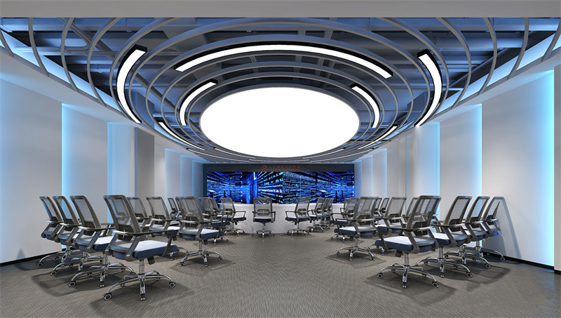 高科技辦公體的設(shè)計(jì)方向以簡約、時(shí)尚、科技感為主。整個(gè)空間采用了適合簡約大方的色彩。部分區(qū)域規(guī)劃有展廳和墻面展示區(qū),采用業(yè)主企業(yè)色彩作為局部色彩搭配和點(diǎn)綴。主色調(diào)為白色,少量淺藍(lán)色和黑色。給人一種整體成熟穩(wěn)重,通透的視覺感,簡約的氛圍。采