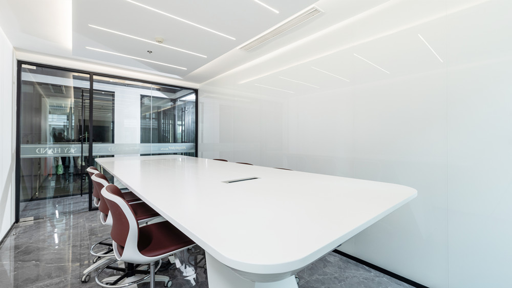 因?yàn)?00平米的辦公空間有限,所以在部分區(qū)域采用隔音玻璃作為隔斷,既能阻隔空間,又能讓每個(gè)空間都有自己的私密性。在設(shè)計(jì)會(huì)議室的時(shí)候,布局要簡(jiǎn)單一些,讓更好的創(chuàng)意在舒適的空間里發(fā)揮出來(lái),提高工作效率。