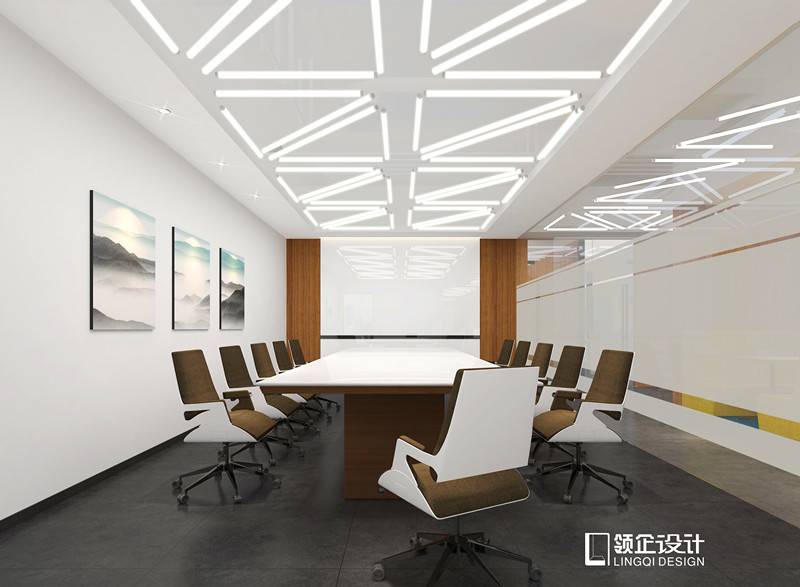 辦公室裝修效果圖接待室:和獨立辦公室一樣,遵循中式古風基調(diào),這個接待室的“古韻”更重。仿宮燈的掛燈是一張沉重的木質(zhì)長桌,上面整齊地陳列著古代文人必備的“文房四寶”。不知道旁邊墻上掛的字畫是不是也出自這些筆墨。下一步是什么?雕花木質(zhì)仿古書架,中央鑲嵌一幅圓形山水畫,頗有些“世界是圓的,地方也是圓的”的寓意。要說在這個會客室里,我最喜歡的就是這扇雕花仿古木門。精湛的工藝放在一邊。就在木門被推開的時候,似乎有一種隆重的儀式感,非常適合會客和洽談房間!